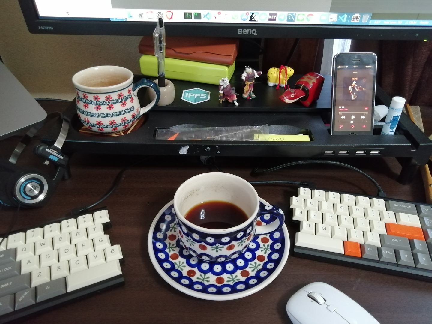ポーランドBOLESŁAWIECのカップです。気分転換にいつも使ってます。その他、可愛い仲間たちとお扇子なんかも散らばってます。