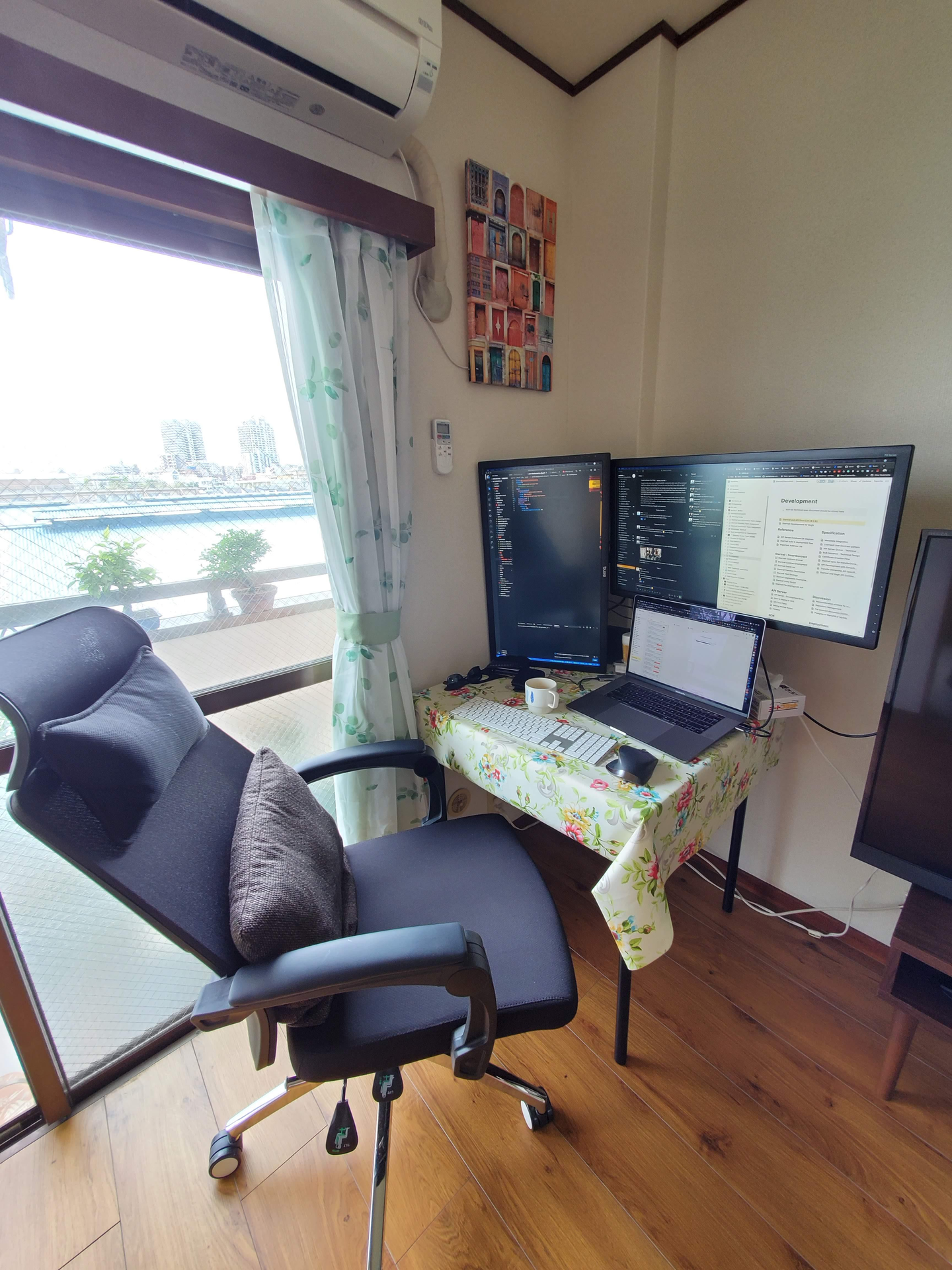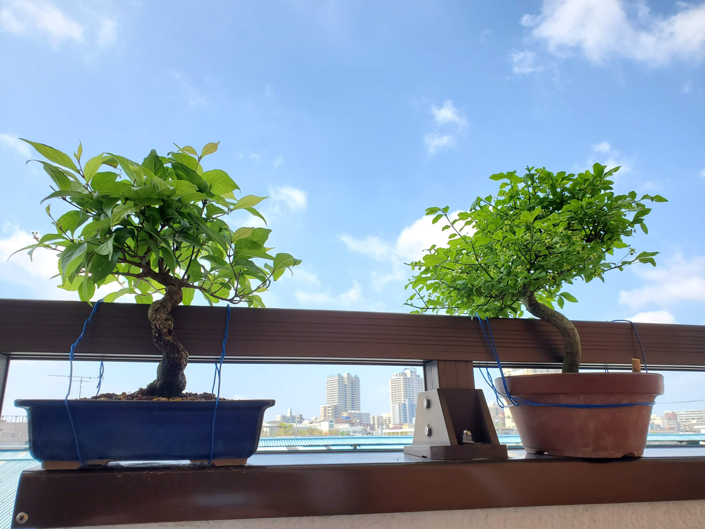 【日本語訳】デスクの隣にあるバルコニーに、2本の盆栽を置いて自然を感じながら仕事をしています。それに加えて野菜も栽培しているので、いい気分転換になります。緑色を見ると脳がリセットされて、とても仕事に集中できます!!