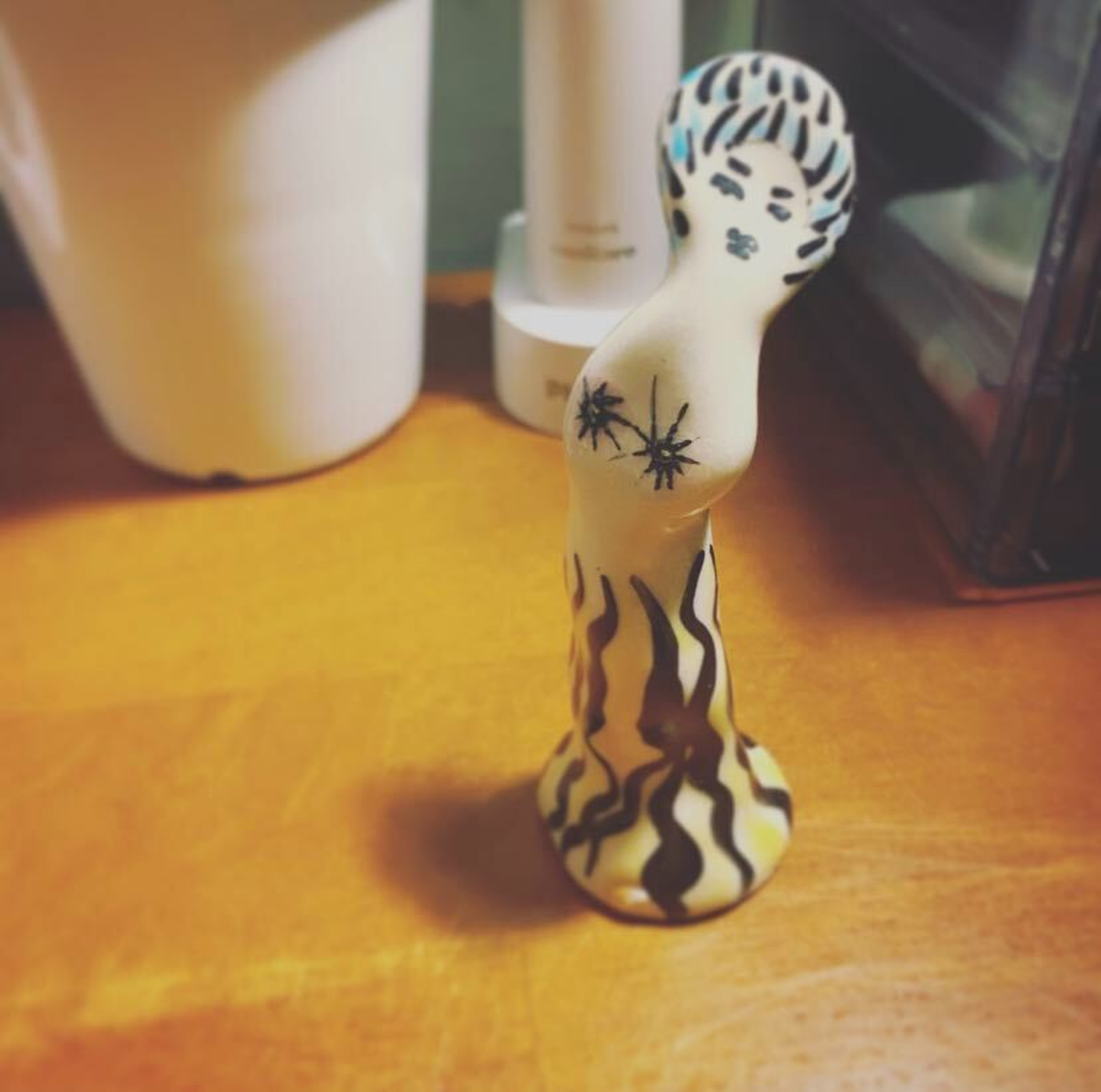 久保田珠美さんの陶器人形です。ちょこんとデスクの上にいて、目に入るとご機嫌な気分になります。