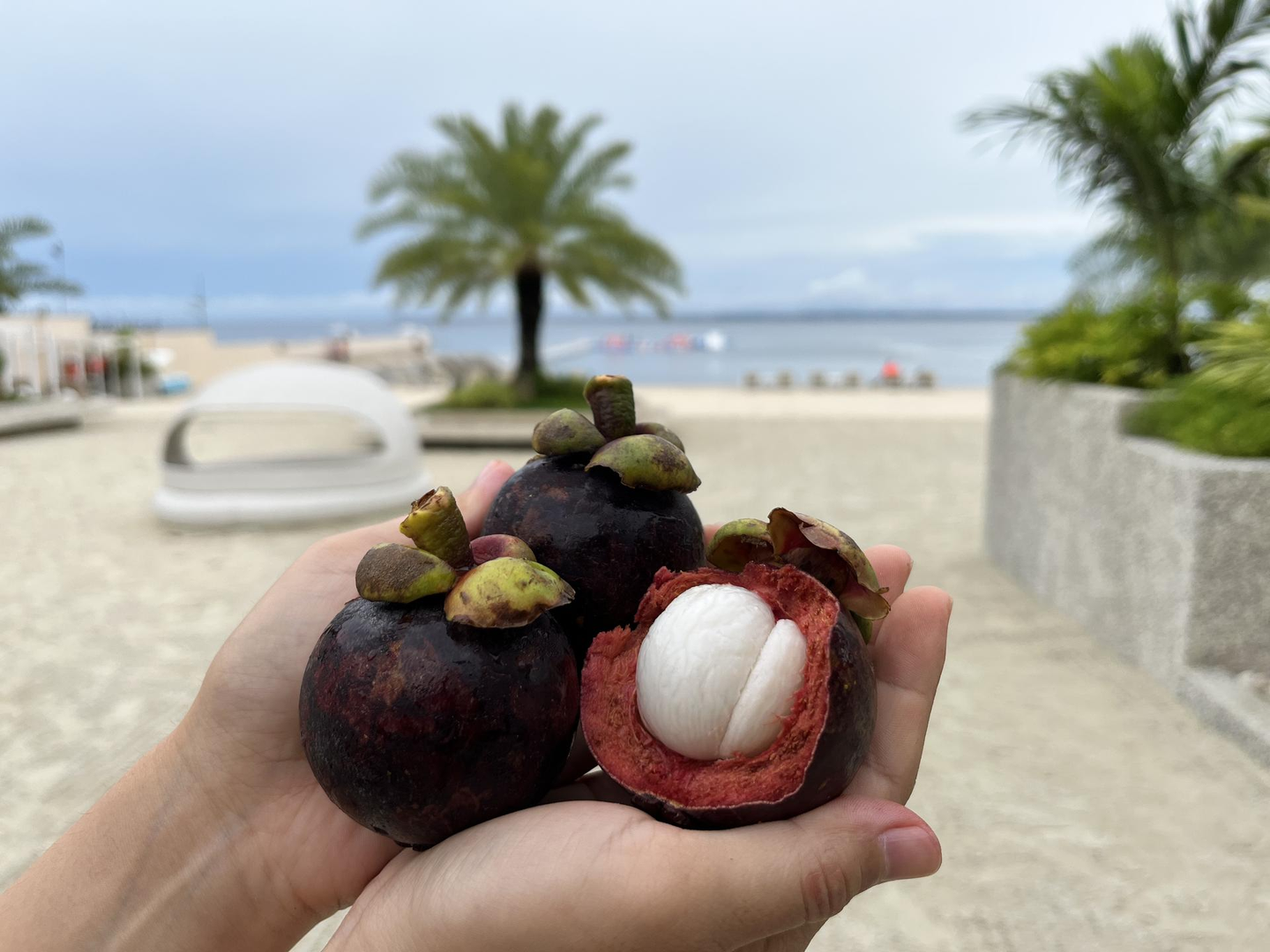 あと、フィリピンといえばマンゴーですよね♪ あちらこちらで地元の農家さんが売っていたので購入。ジンベイザメと泳いでくたくたになったところに芯まで沁みるおいしさでした♡果物の女王といわれているマンゴスティーンも合わせて購入しましたが、こちらも東南アジアだからこそ味わえる極上南国フルーツです。濃厚な甘酸っぱさで、すっっごくおいしんです!個人的にはマンゴーより好きです😋