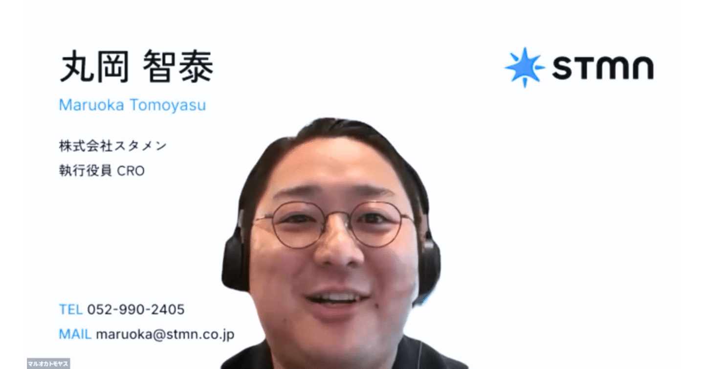 最初に登壇したのは、スタメンCROの丸岡さん。