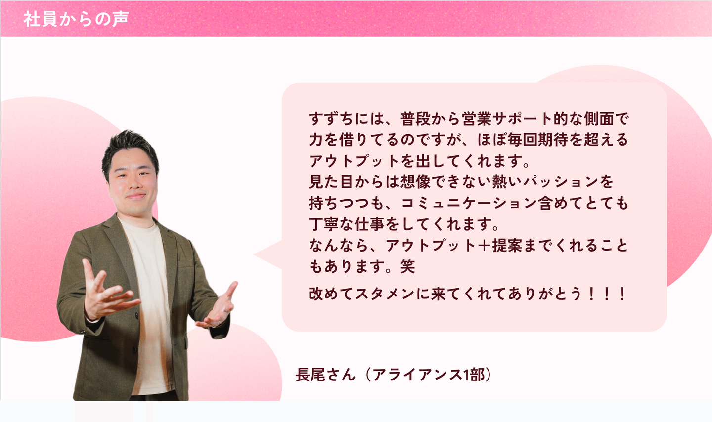 「数ある会社の中からスタメンを選んでくれてありがとう。