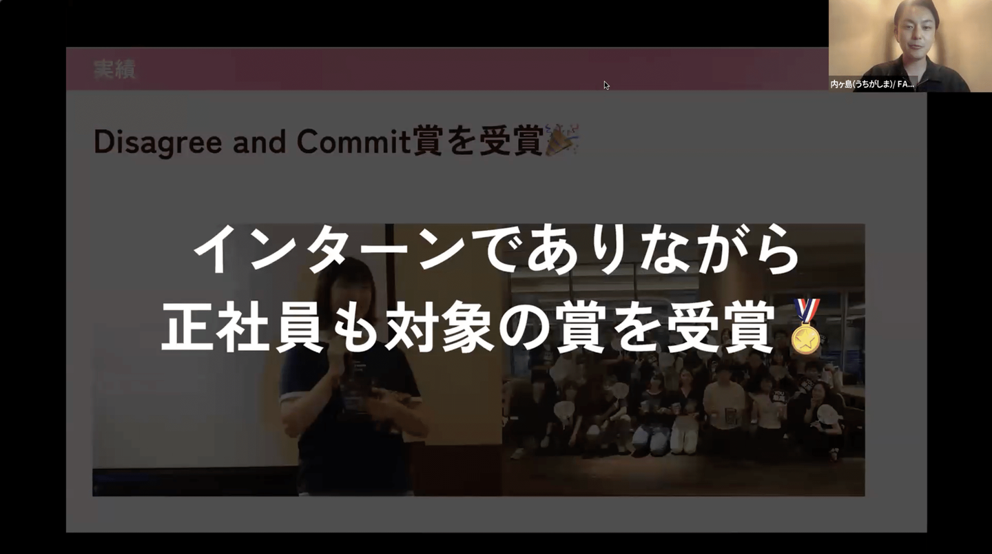 今年の内定者2人は、どちらも長期インターンとしてストイックに成果を出してきたメンバー。そのため今回は、形式ばったセレモニーではなく、「これまでの感謝を伝え、未来へのワクワクを共有する時間」にしたそうです。