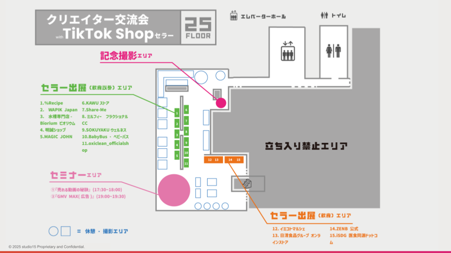 2025年9月25日、studio15株式会社はTikTok Japanオフィス(東京都渋谷区)にて、TikTok Shopへ出店しているセラー(出展企業)、その商品を動画やLive配信で紹介しているクリエイターを招き、その場でサンプル請求や動画制作、投稿が可能なマッチングイベントを開催し、15組以上のセラー、60名以上のクリエイターが集まり大盛況となりました。