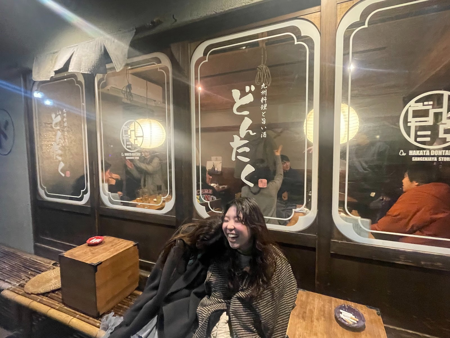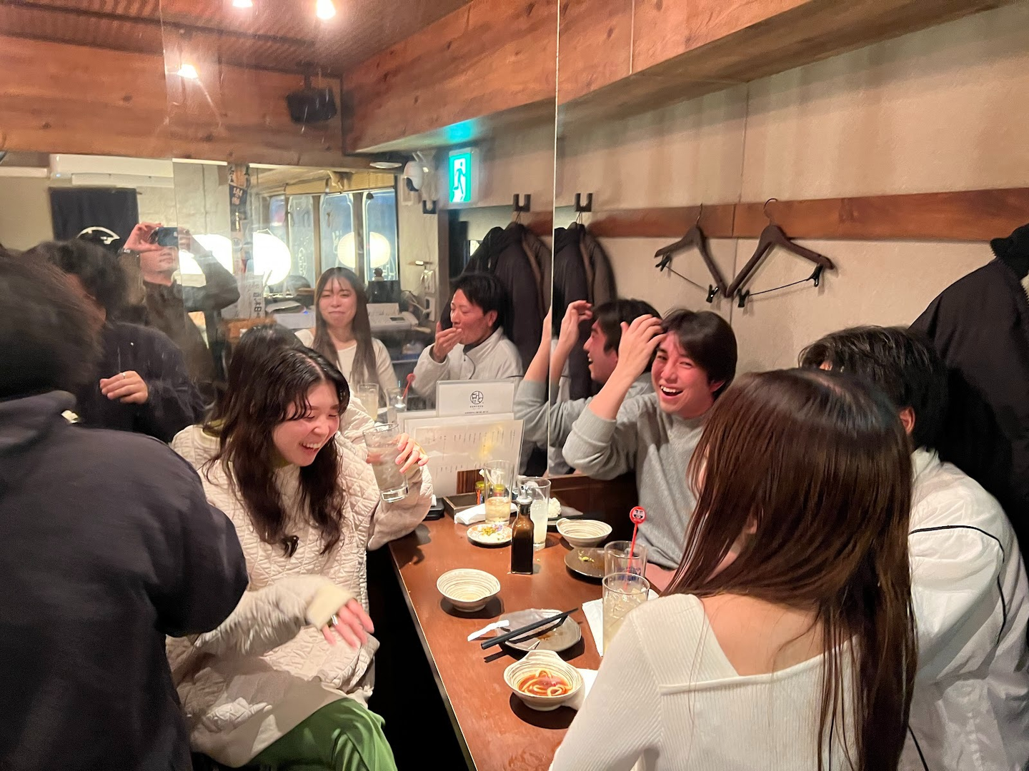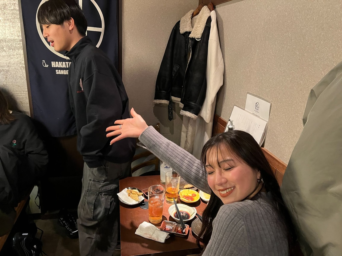 お酒の種類も豊富で、生ビールから、料理に合うハイボールやレモンサワー、さらには九州料理店ならではの本格的な焼酎まで。 美味しいお酒と料理に囲まれて、話題は「これからのショート動画をどう面白くするか」という熱い企画会議(?)のような雰囲気から、恋バナまで若者らしく盛り上がりました。