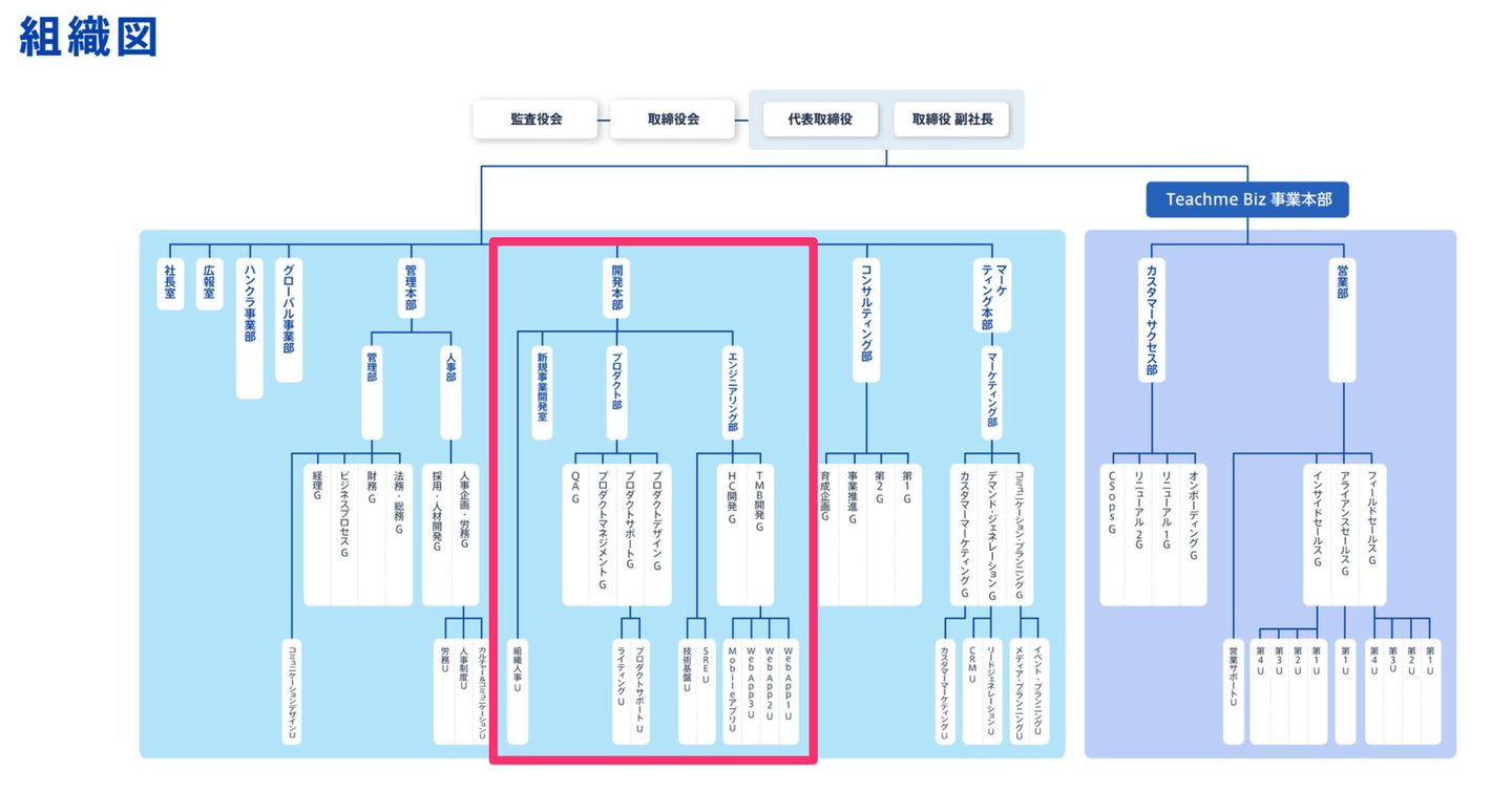 ▼開発本部の組織図※2023年6月時点(基本的には開発本部内での留学が主となります)