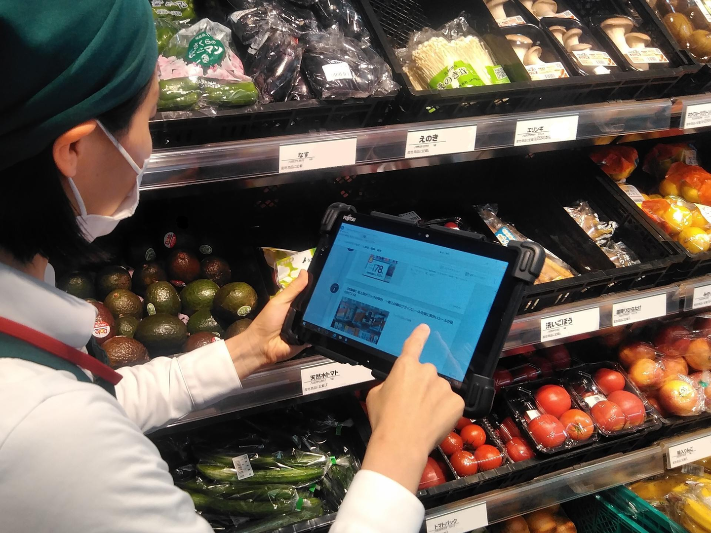業種問わず、あらゆる現場で活用されているTeachme Biz 写真はまいばすけっと様での活用シーン