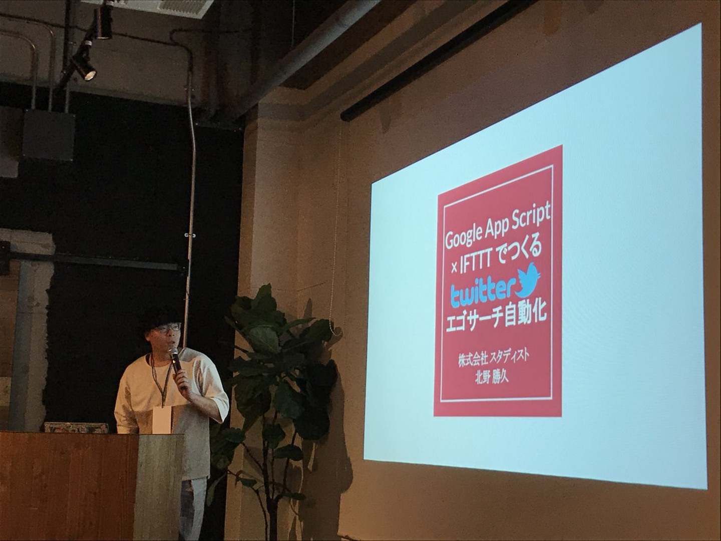 昨日、Gaiax さん主催のGoogle Apps Script 活用ミートアップにて、『Google Apps Script × IFTTT でつくるTwitterエゴサーチ自動化』と題した発表をしてきました。