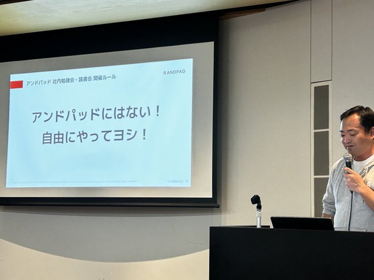 組織開発部 部長の後藤さんが登壇し、アンドパッドの社内勉強会・読書会・イベントをすべて紹介してくれました!