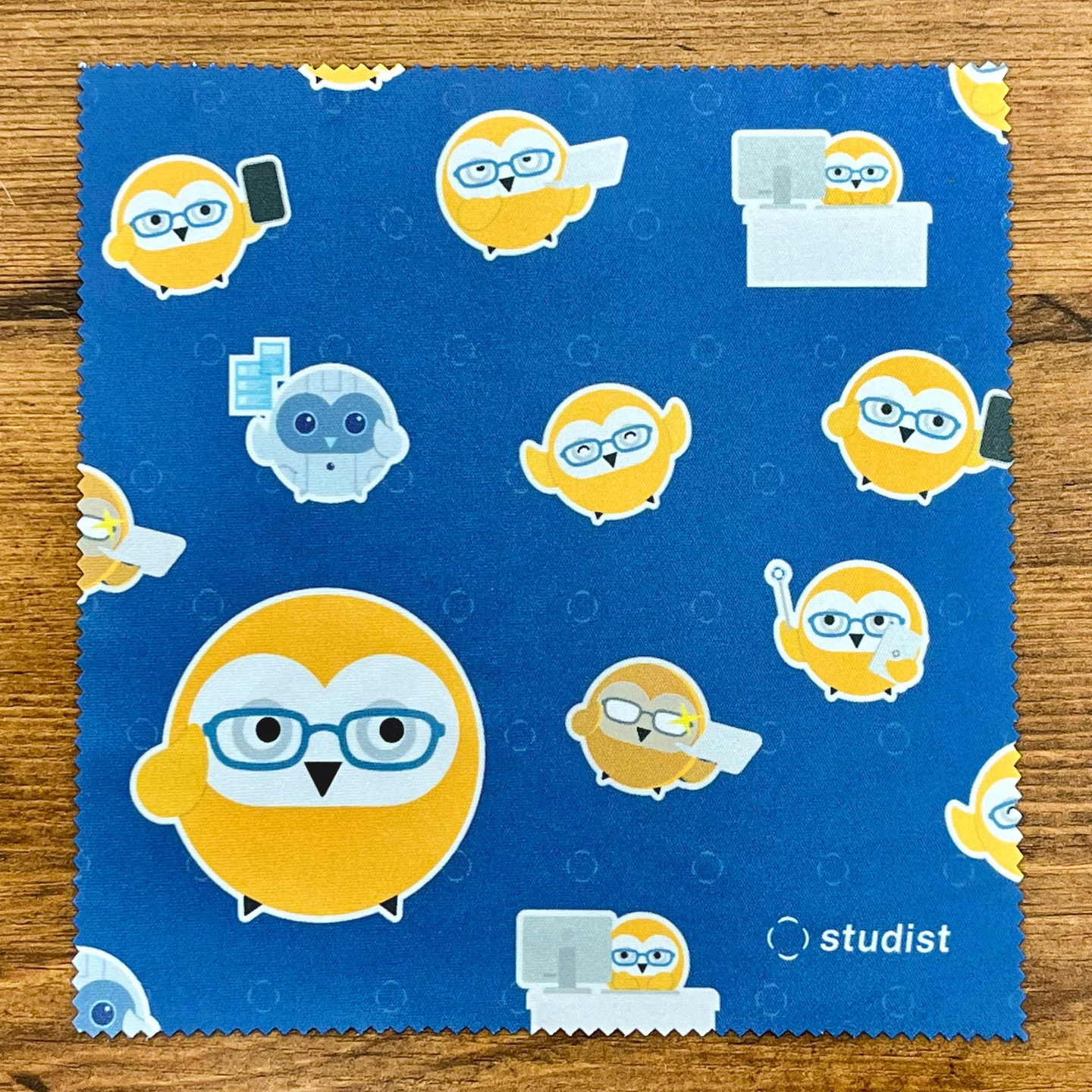 イベント参加者にノベルティをお配りするため『Teachme Biz』のマスコットキャラクター『マロン』が描かれたオリジナルのマイクロファイバークロスを制作しました。
