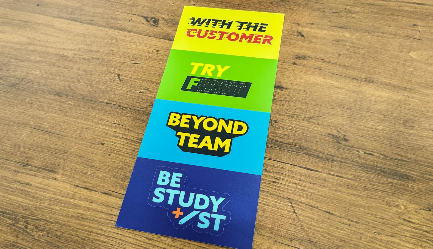 スタディストで掲げている4つのValueを意識して働いてもらいたい!という思いから作ったValueのロゴステッカーや箱ティッシュBOX。