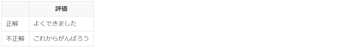 テスト結果として最もシンプルなものは、答えがあっているか、間違っているかを判定してフィードバックします。