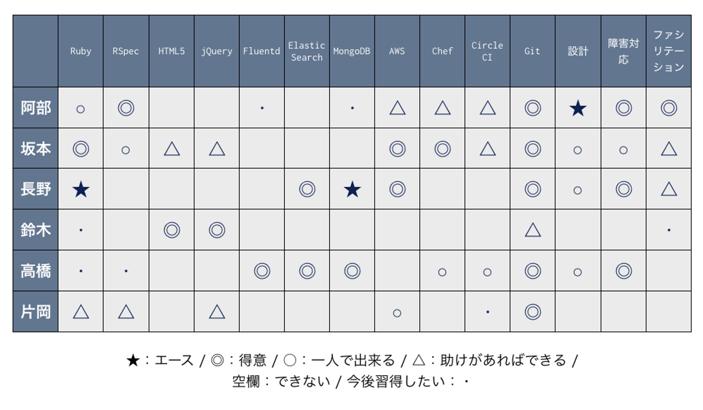 チームで必要なスキルを一覧化していなかったので、新メンバーにとって、何のスキルを期待されているのか不明という課題がありました。