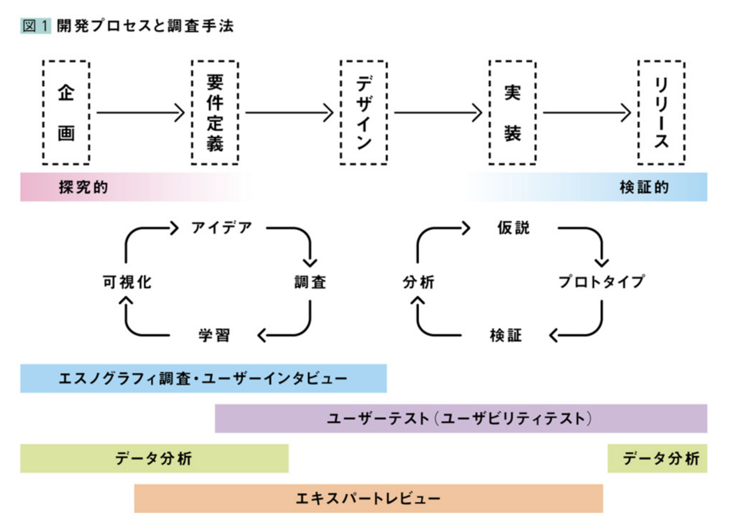 まだ施策検討段階でアイデアやヒントが欲しいのであれば、ユーザーインタビューや現地調査で広くユーザーインサイトを拾ってみたり、すでに仮説や画面仕様があるときは、ユーザーテストで仮説や品質を検証することが有効です。