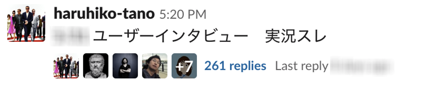 ちなみにSlackにもユーザー調査専用のチャンネルを作り、そこでユーザーインタビューの準備や告知をするようにしています。