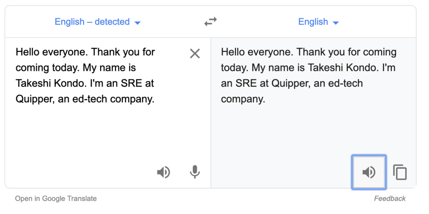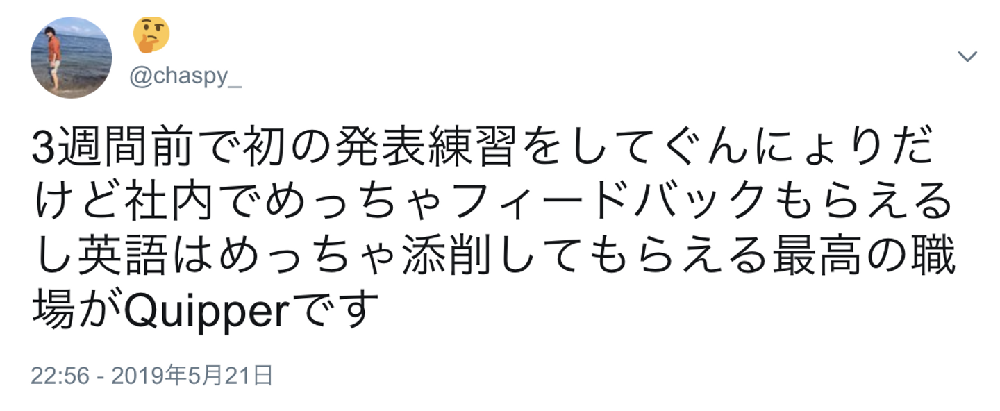 こんにちは。Quipper採用担当の鈴木です。今回の記事は、SREの@chaspyによる「英語でのプレゼンをやりきるたった1つのコツ」です!是非、ご覧ください!