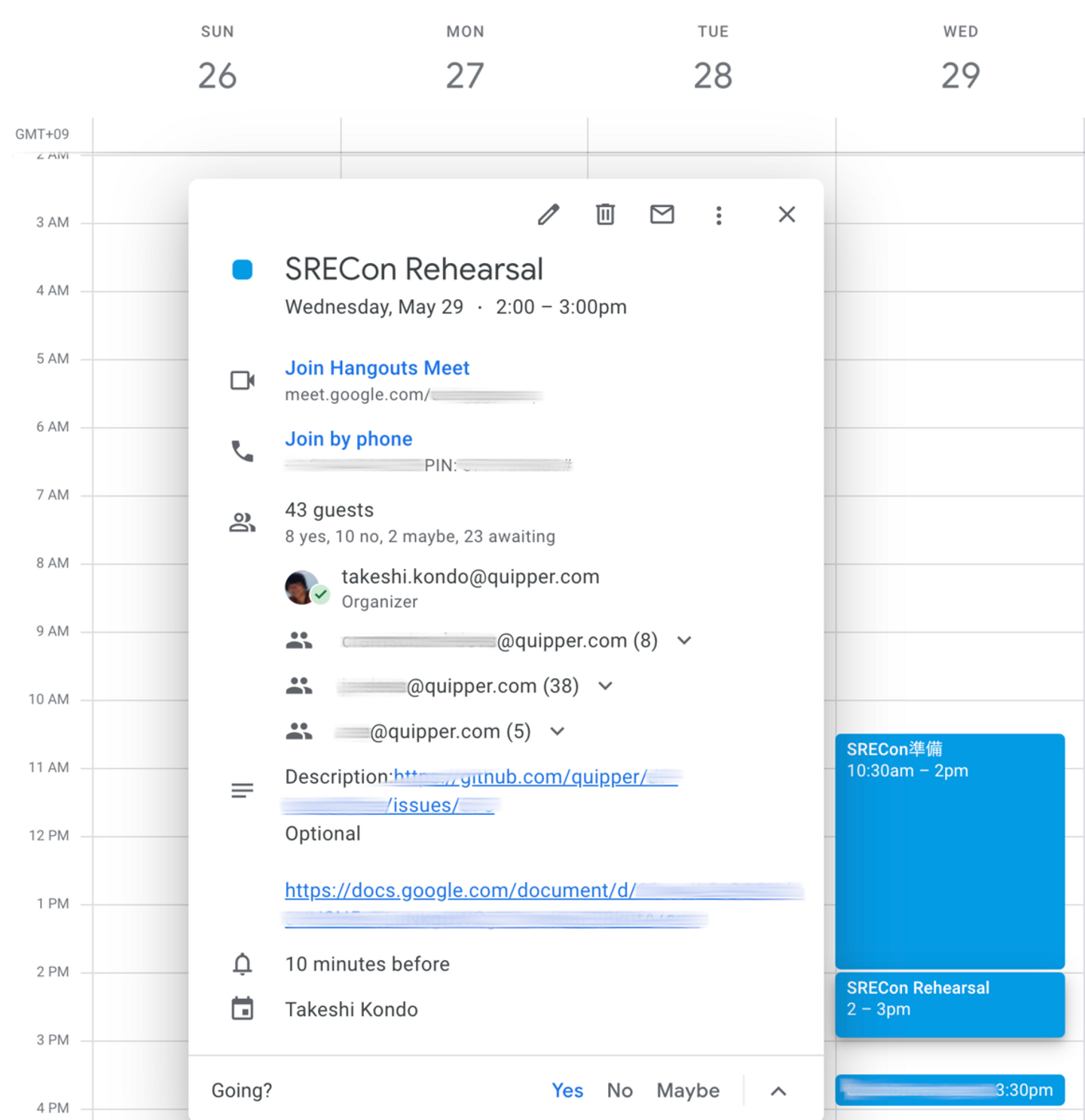 本番前までに最低3回の発表練習の予定を設定し、あなたのチームメンバーを Invite してください。