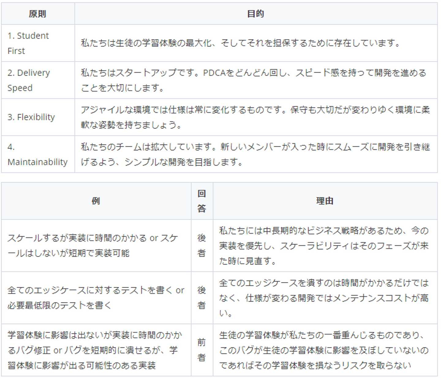 これらの優先順位を決めるのはプロダクトチーム全体でやることをお勧めします。あくまでもこのPrinciplesはチーム内で合意、または共感を得ていることが大切だと考えています。