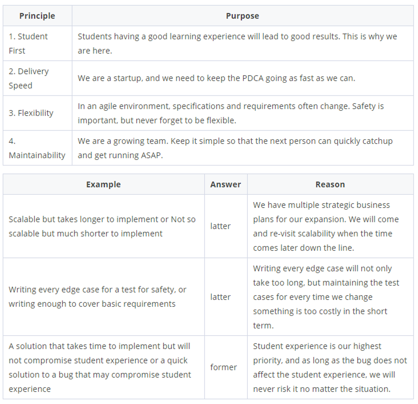 私たちのチームでは「Decision Making Guideline」というものを作成し、運用しています。その結果、今まで時間の掛かっていた技術選定の効率が一気に上がり、技術決定者不在の状況でも意思決定の出来るチームになったと考えています。
