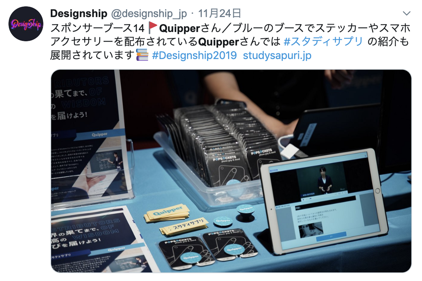 今回のDesignshipのスポンサー・ブース出展を通じて、「Quipper = スタディサプリ/スタディサプリ ENGLISHをはじめとした様々な教育サービスを運営している会社」という認知を高めていきたいという背景がありました。