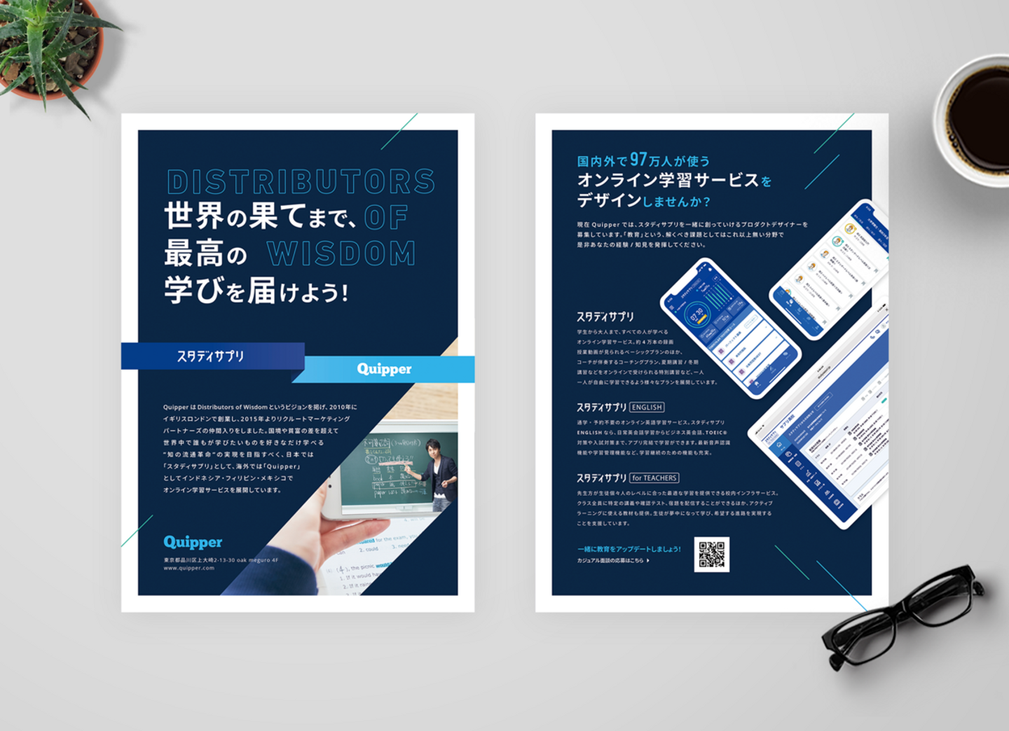 - 会社名を知ってもらえるよう、Quipperロゴを中心に大きく配置