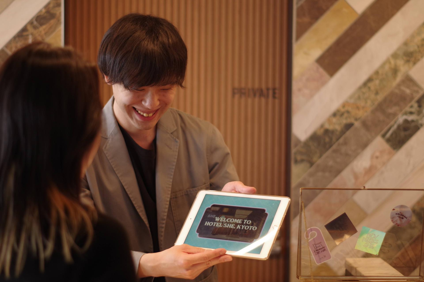 空間やコンセプト、そこでの体験を大切にしているHOTEL SHE, KYOTOだからこそ、ゲストが京都に訪れたときのサードプレイスとして愛されるよう、今後もそれらを守り、時に変化させていきながら、どれだけ自分をそこに表現できるかを楽しみに、今日もフロントに立っています。