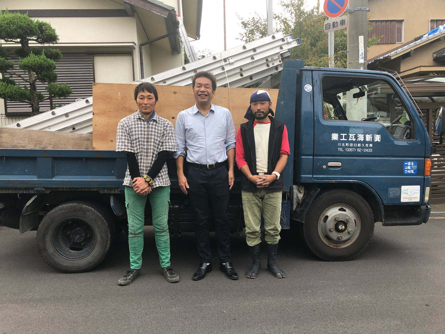 中島さん「新海さんと出会えたのは幸運でした。こんなにいい職人さんはなかなかいないよ。もちろん助太刀さんにも感謝はしてますが、本当にびっくりしてます。大阪の南の方とかまだまだ被害が多くて、やることもたくさん。特に、今回の災害で屋根に和瓦を使用している住宅の被害が多かったので、新海さんのような和瓦のスペシャリストが支援に駆けつけて下さったことは本当に奇跡ですよ。最近では、和瓦を扱っている職人さんも減ってきていますしね。今回のご縁は大切にしていきたいなと思ってます。新海さんにはこれからも引き続きお仕事をお願いしていきたいですね。」
