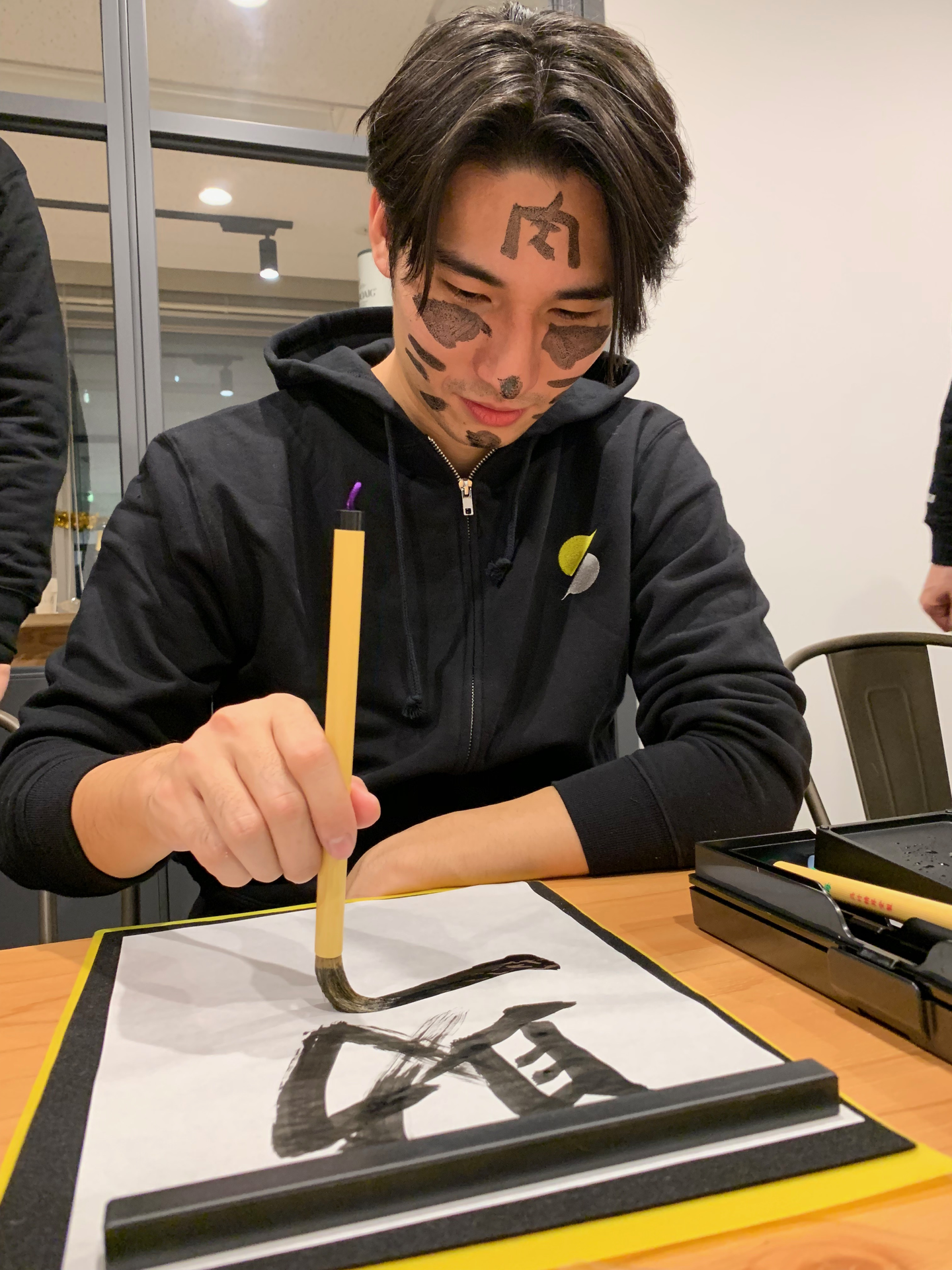 (おまけ:真剣に書道をする大塚氏)