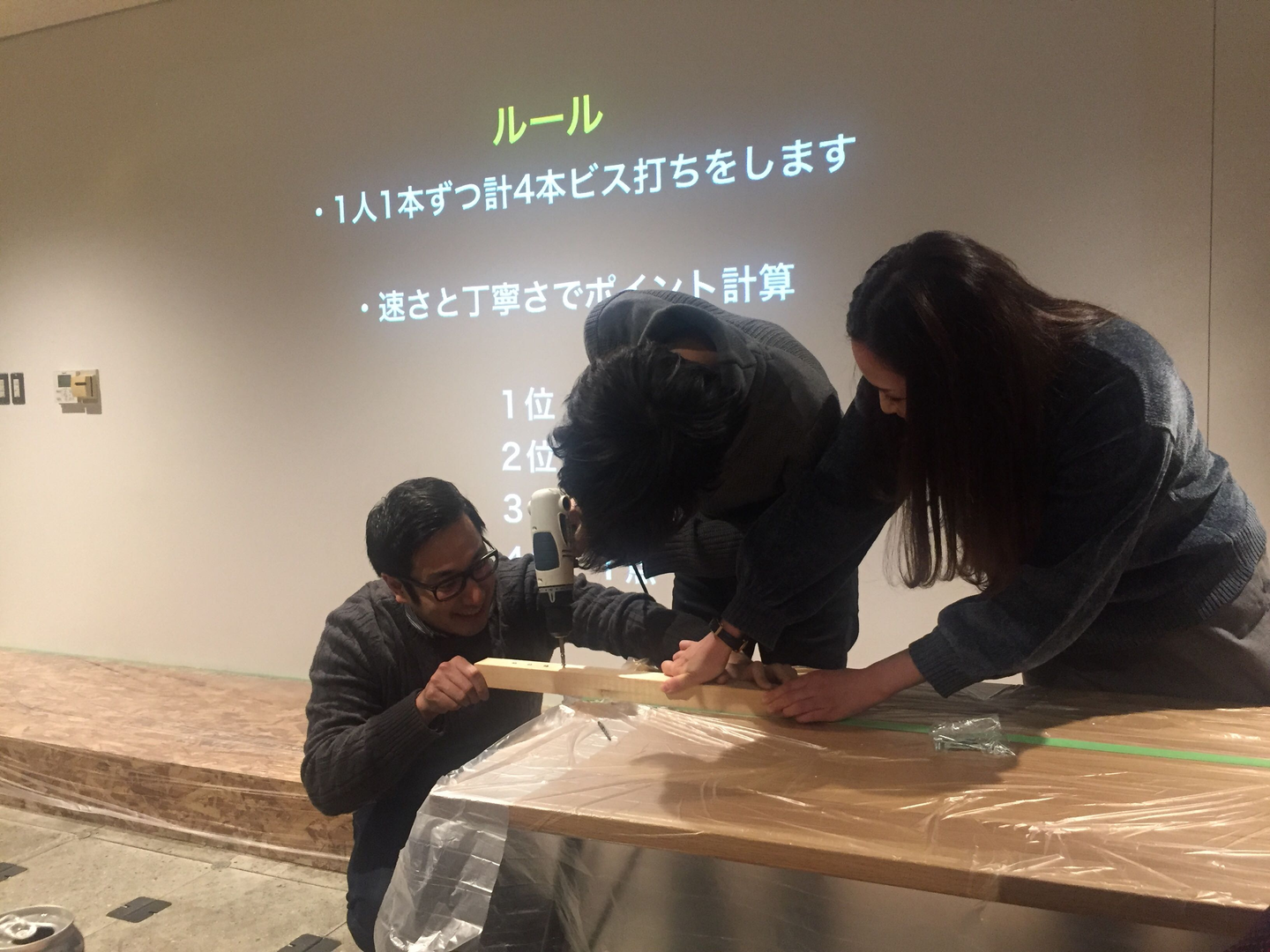 ①ビス打ち対決
