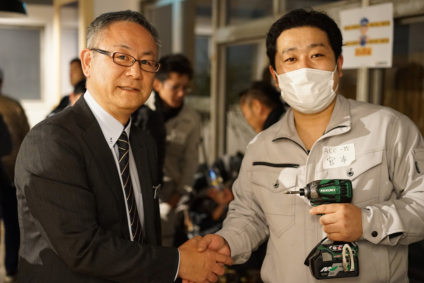 そして、工機ホールディングスの山口さんと握手。