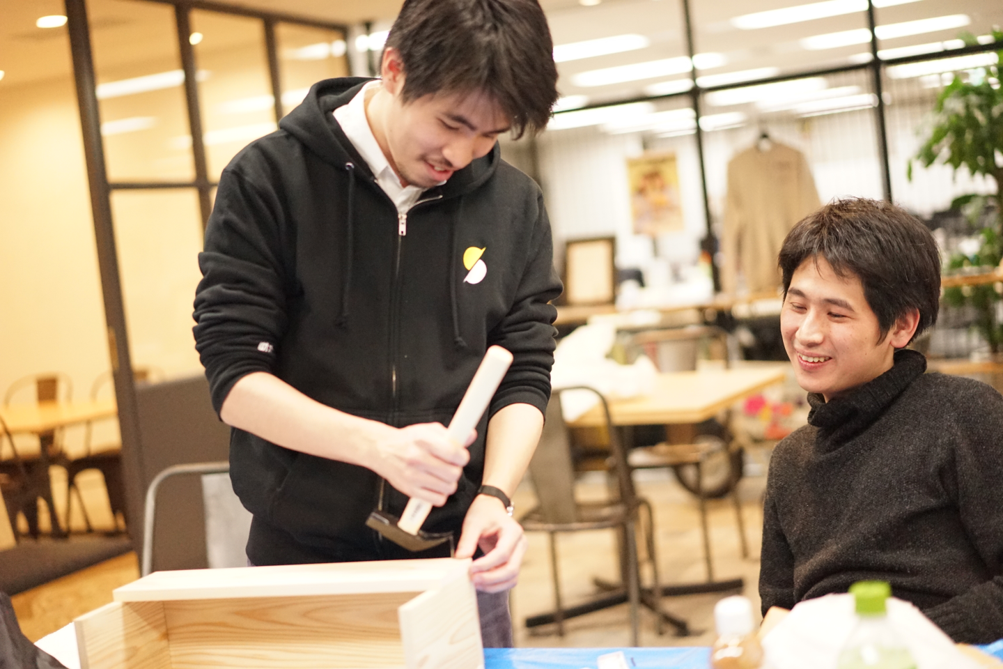 以前、助太刀の社員忘年会でインパクトドライバーでビス打ち対決をした際、社員一同苦戦した過去があったので笑、今回は初心者でもできそうな内容にしなくては、、と考えました。
