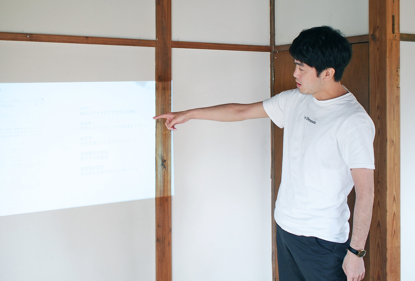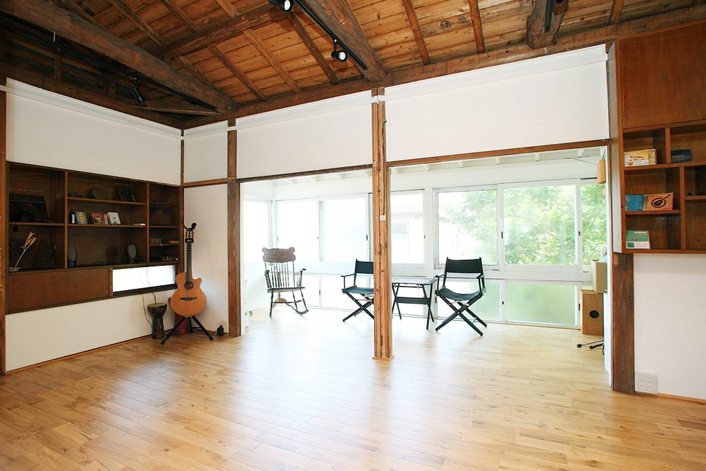 由比ヶ浜近くの一軒屋の2階。こちらに会議机と椅子を設置。Wifi、プロジェクターも完備!