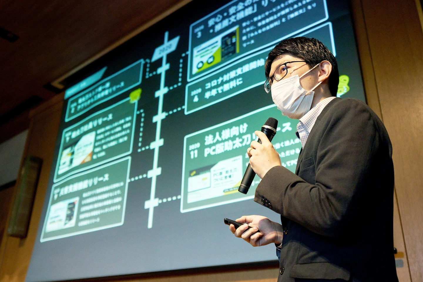 5年間の助太刀の成長をインフォグラフィックにまとめ、当日はCOO添田より発表を行いました。