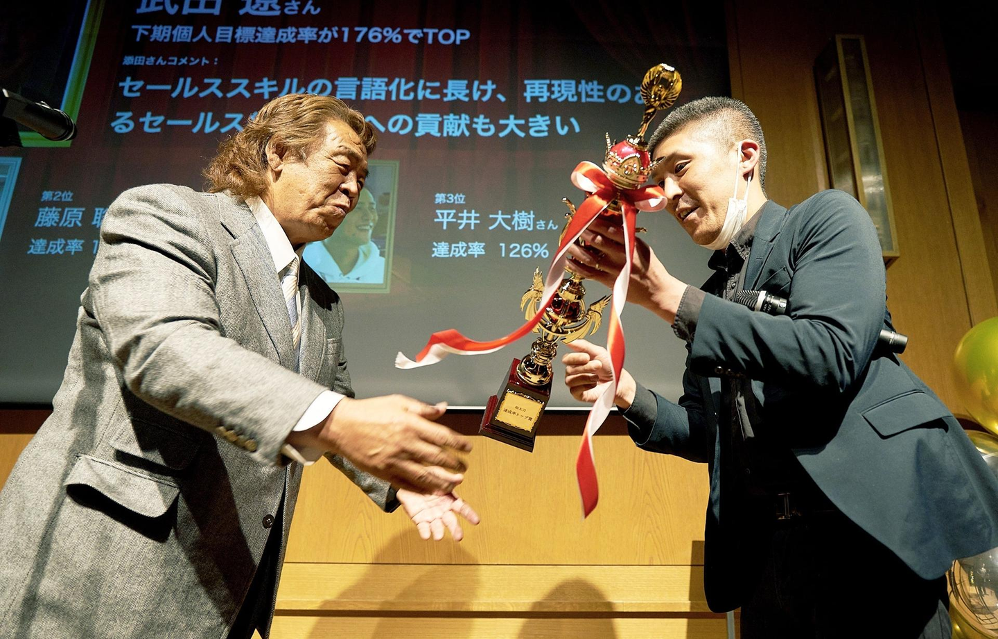 受賞者には長州さんからトロフィーの授与。