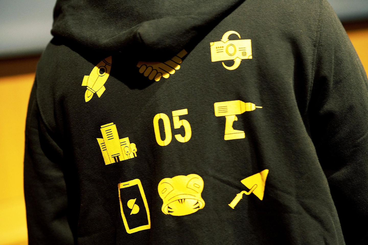 助太刀にまつわるアイコンが刻まれたバックプリント。こちらもデザイナーチーム作。