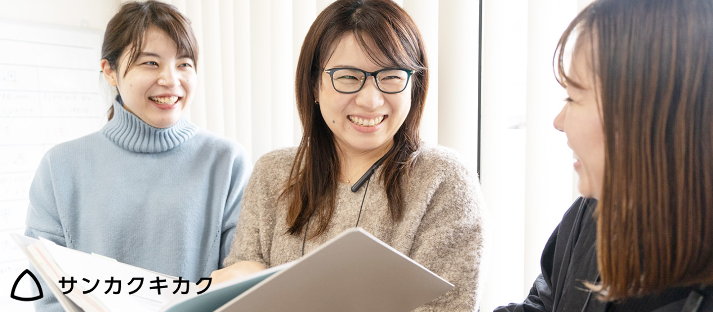 子どもたちを保育園に預けている間にハローワークとスマートフォンで職探しをしました。サンカクキカクからの募集要項に記載の(当時の)勤務地が、家から車で2分の距離にあることから応募を決めました。(笑)
