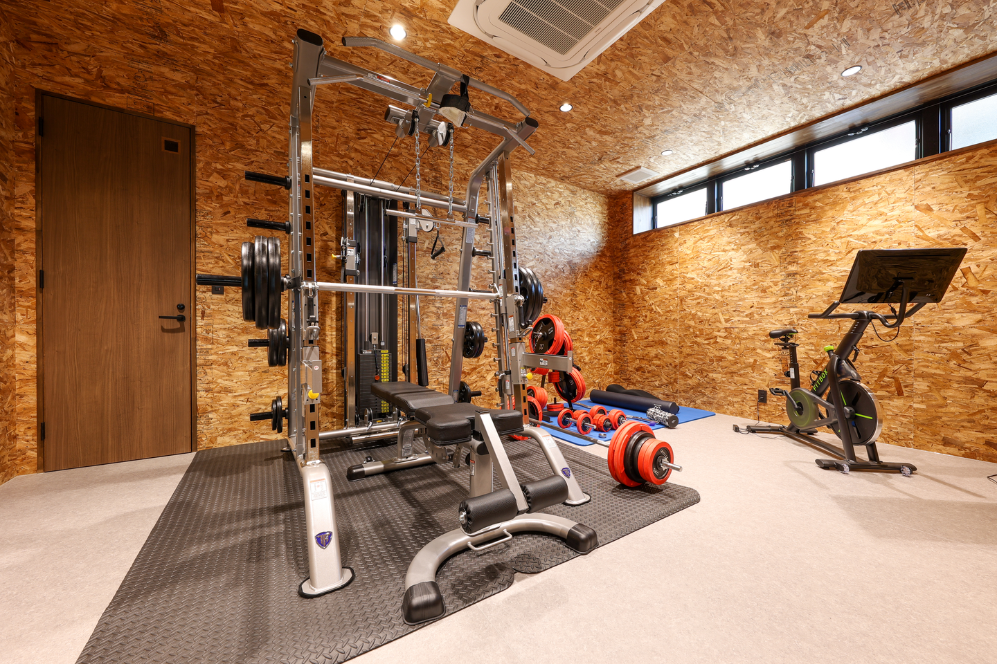 オフィスの中でも異彩を放つこの施設は、福利厚生ということで社員が自由に使用OK!社員のリフレッシュ、体作りにもなればと作られました。