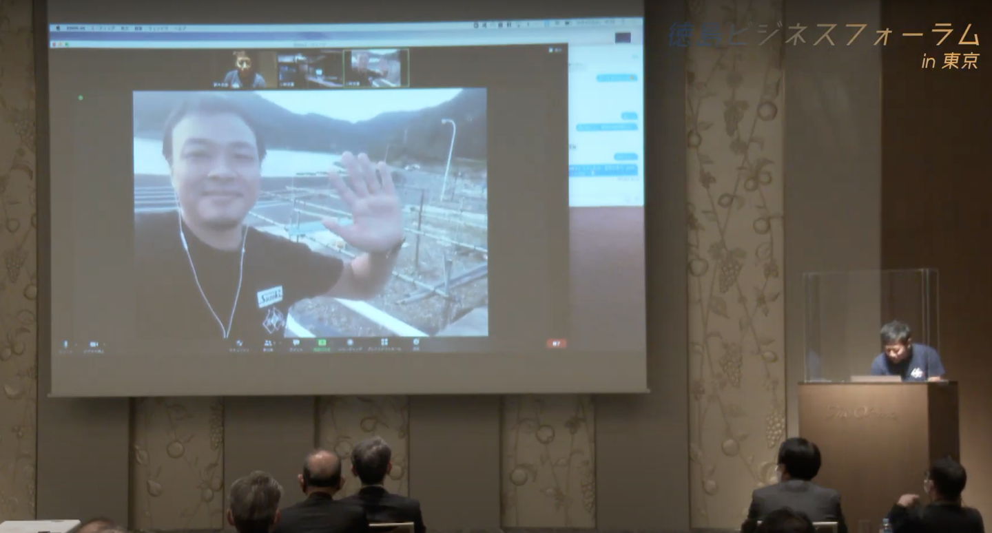 セッションでは、東京の会場から弊社の徳島県美波町サテライトオフィス美雲屋に勤務するスタッフとZoomで中継を行い、豊かな自然に恵まれた美波町での働き方や暮らしについてご紹介させて頂きました。