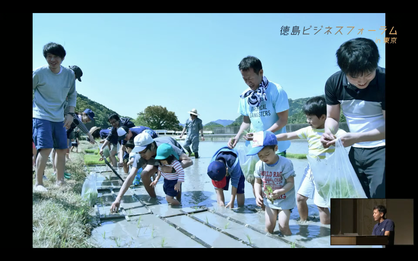 (写真上:エンジニアの家族も美波町に集合して一緒に田植えに挑戦する子どもたち)