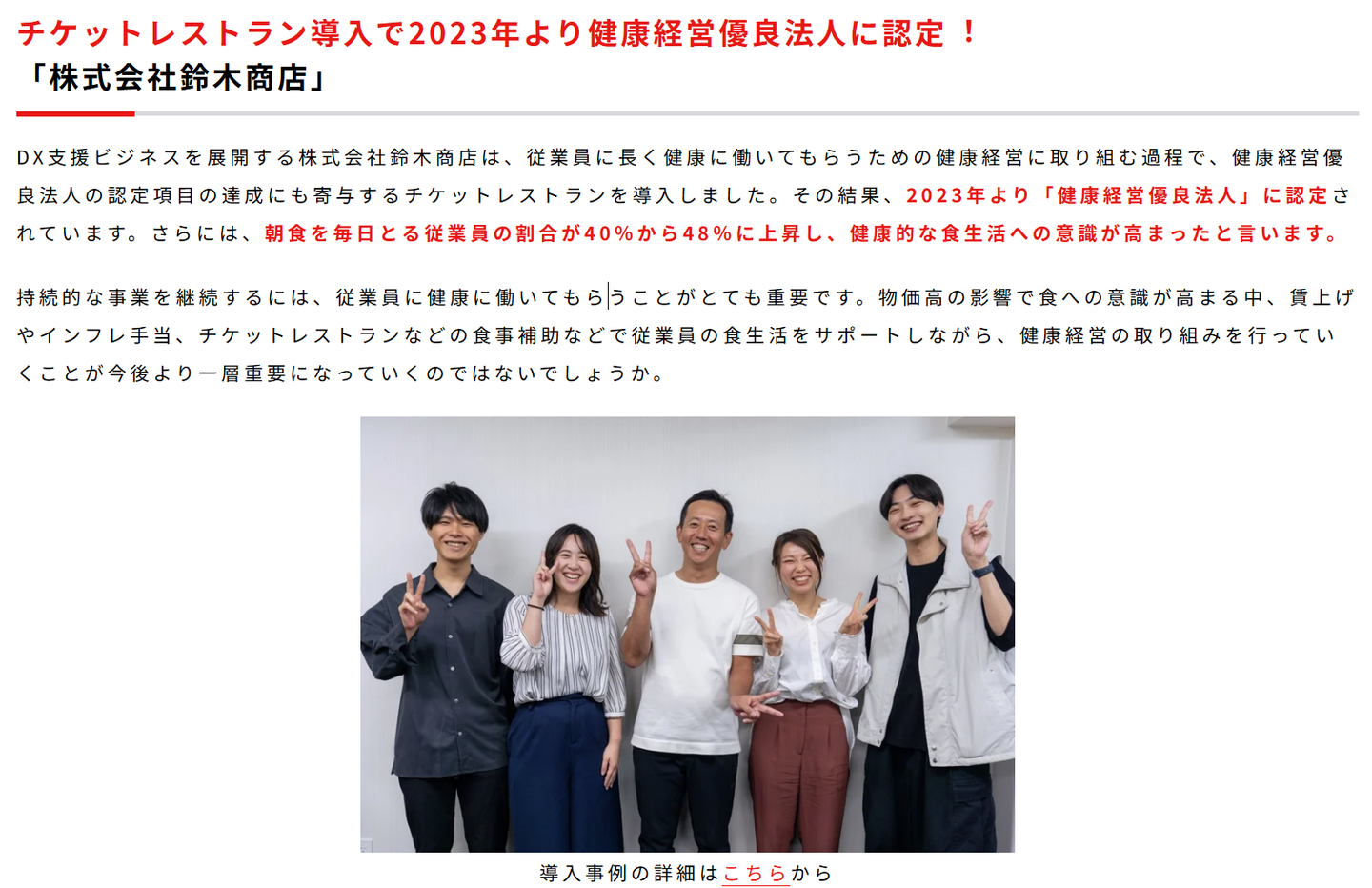 この度、福利厚生の食事補助サービス「チケットレストラン」の運営会社エデンレッドジャパンのCSR活動の記事において、鈴木商店の健康経営の取り組みをご紹介頂きました。