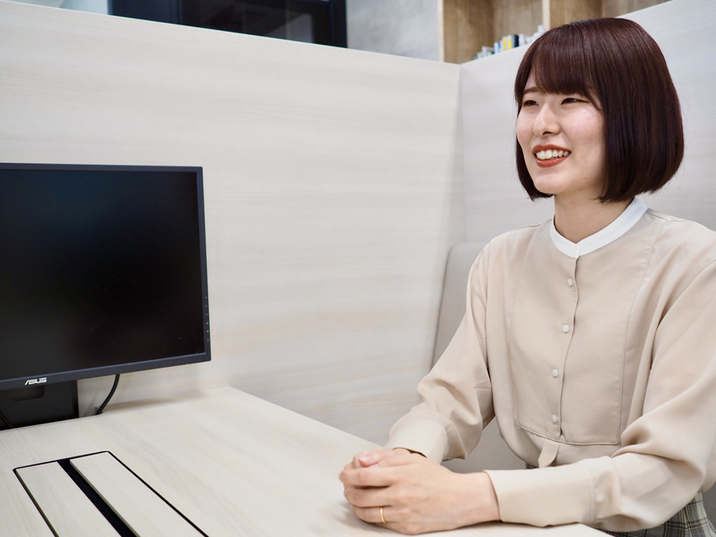 最終的に入社の決め手となったのは、話しやすさ、ですかね。一般的な面接で聞かれる質問ではなくて、私が物事をどんなふうに考えているかどうかや、性格を知ろうとしてくれていることが伝わってきました。直感で「ここなら楽しく働けそう!」と思って、迷いなく決めました。