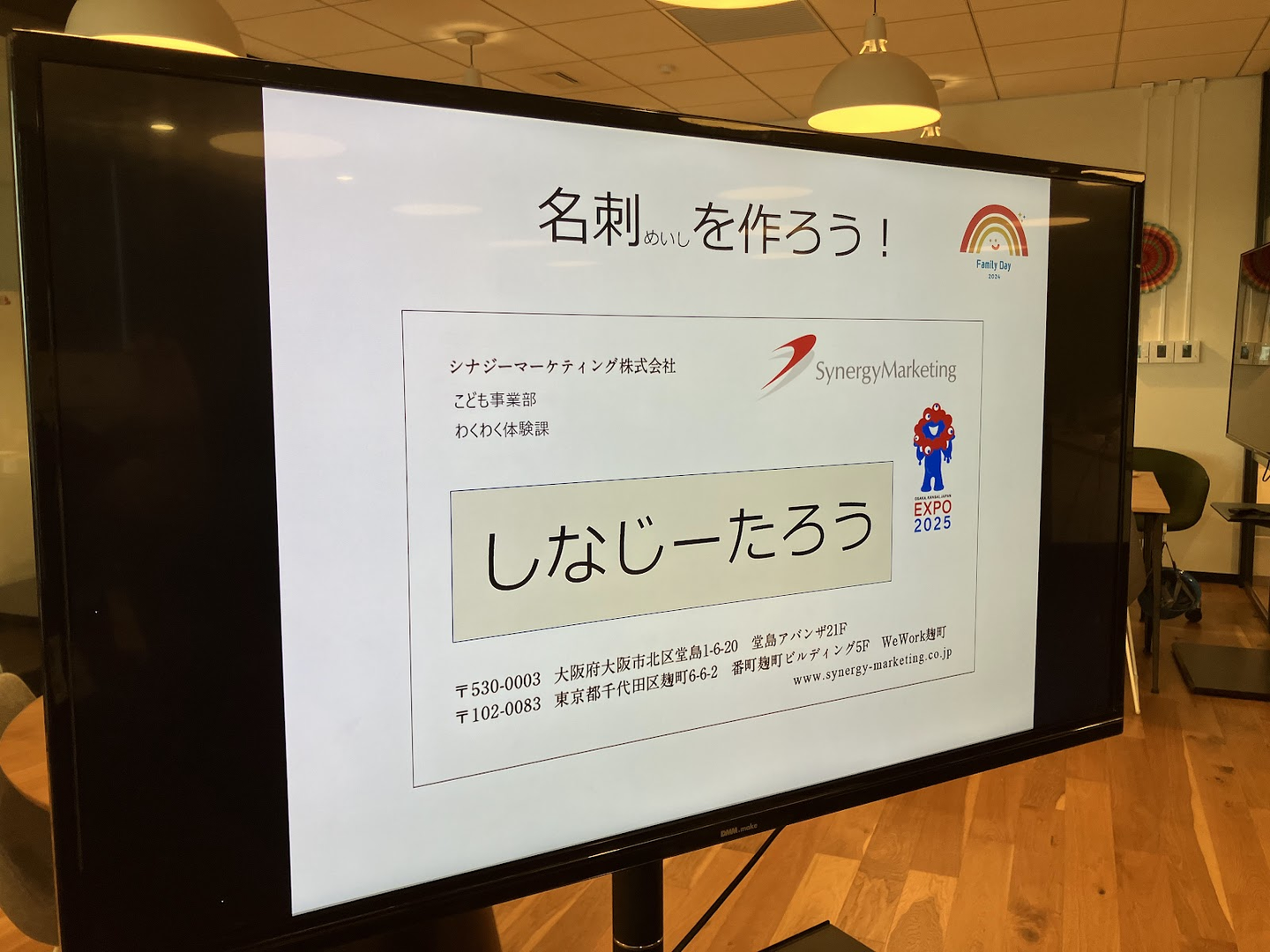 東京オフィスでは当社役員である岡村さん、大阪オフィスでは社長である奥平さんのあいさつでFamily Day2024が始まりました!当社の仕事内容の紹介や社長の顔あてクイズなど、まずは子供たちに当社のことを知ってもらうためのコンテンツを提供しました。