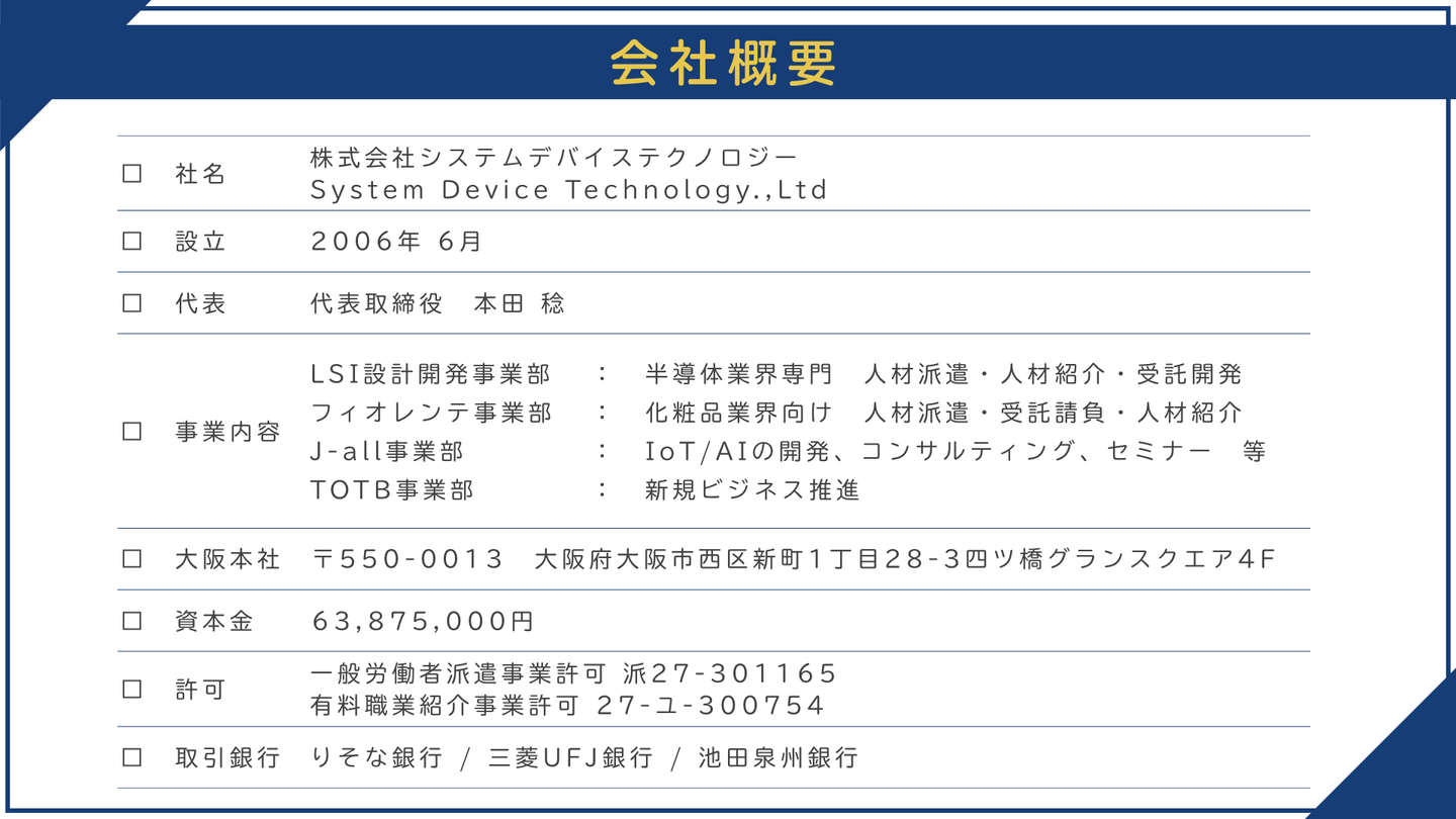 株式会社システムデバイステクノロジーという会社の代表取締役をしている本田稔と申します。