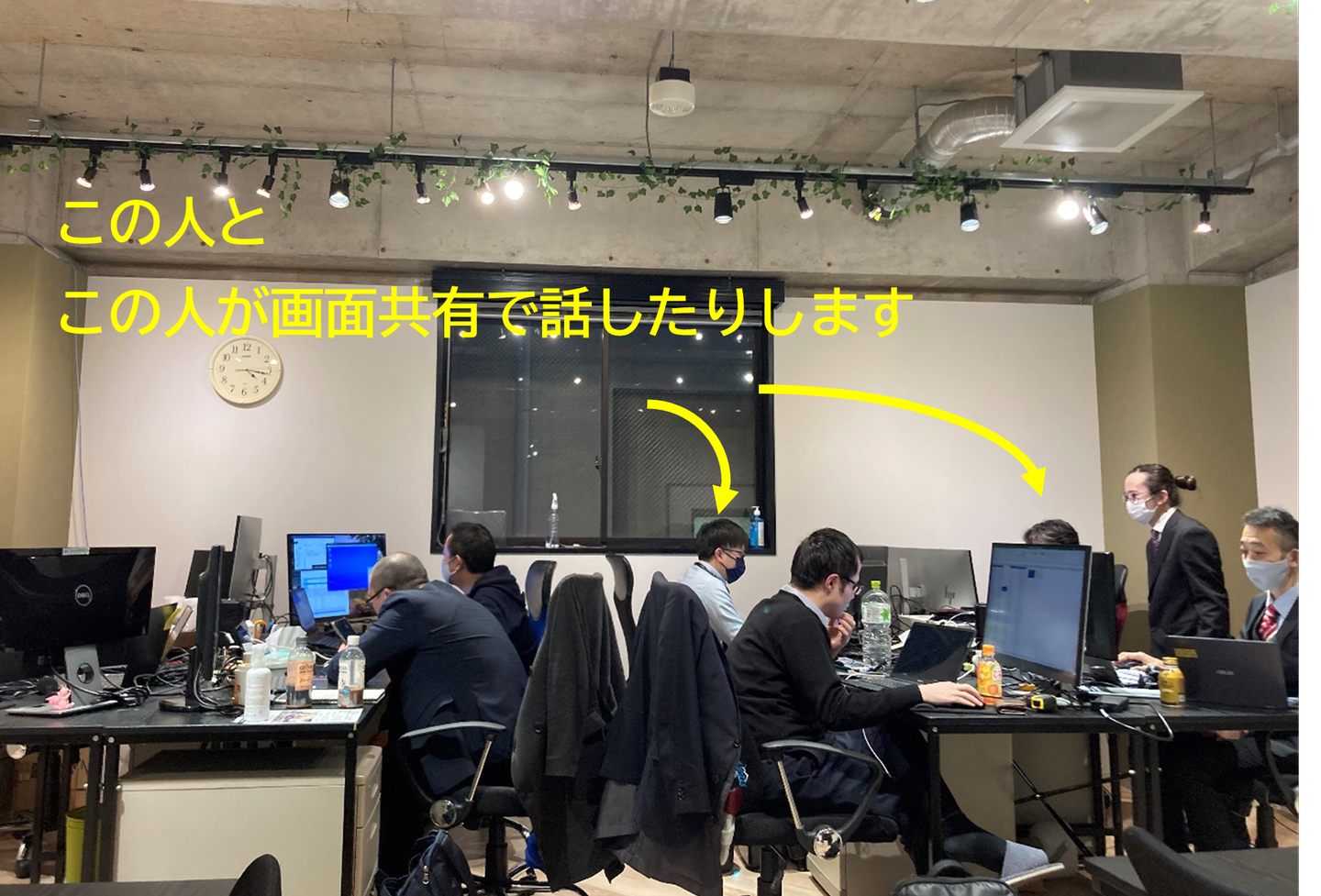 真正面に座っている社員同士で、お互い自分のパソコンでビデオ会議ツール「Around」を使って通話しながら画面共有されていた光景はIT企業ならではで、私だけ失笑(*´з`)