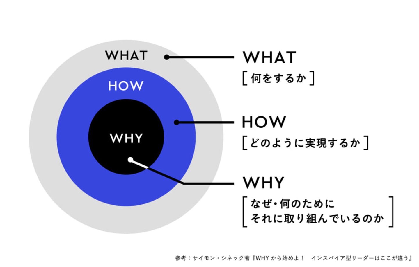 また、「パーパス」に関する論考でよく引用されるのが、マーケティングコンサルタントのサイモン・シネックによる『WHYから始めよ!』に登場するゴールデンサークル理論です。