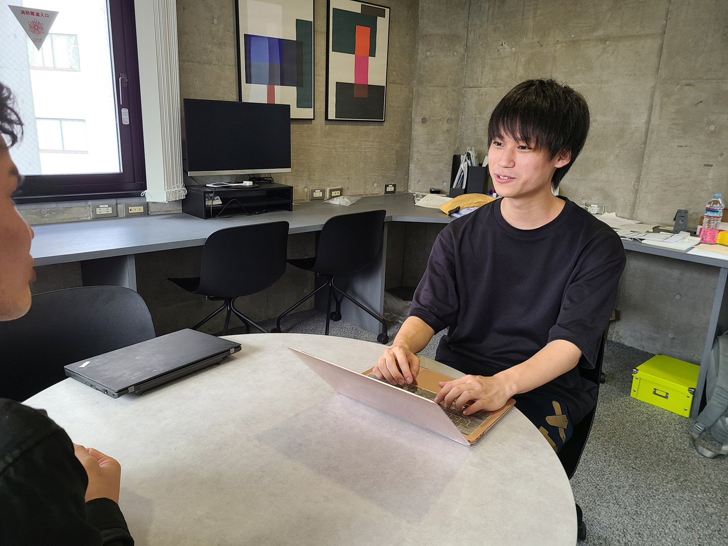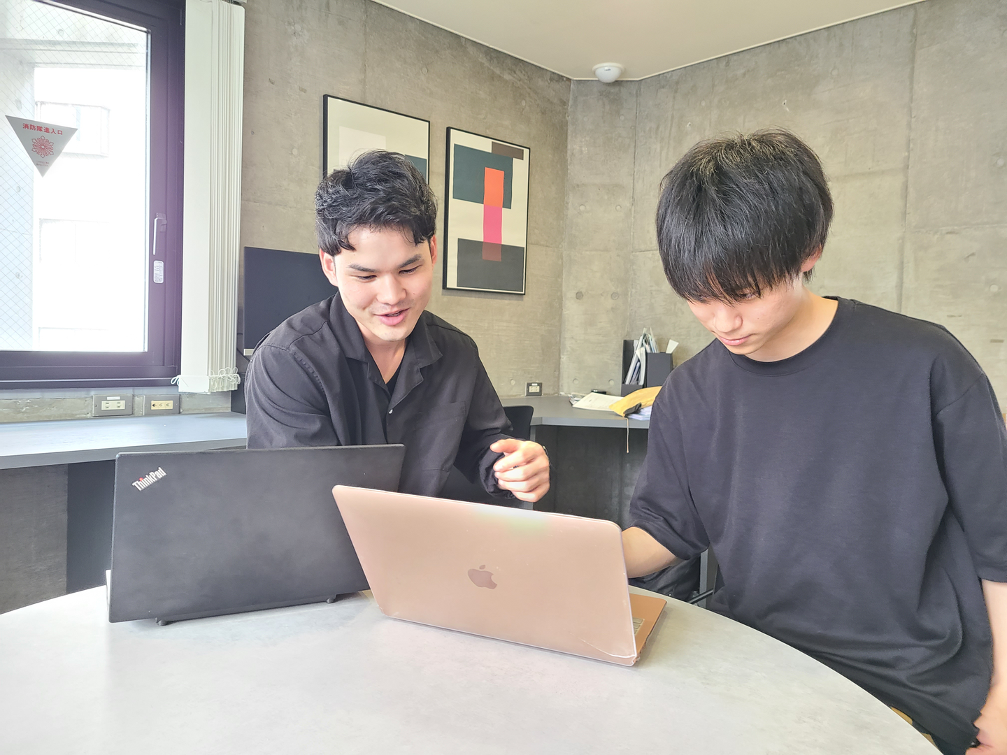 当初は分からないことや壁にぶち当たったらとりあえず聞いて、教えてもらおうというスタンスだったのですが、社員の方もお忙しい中で効率的に物事を進めるため、出来るところまで思考錯誤して取り組んでみて、どうしてもわからない部分については助言を求めるという思考プロセスが身につきました!