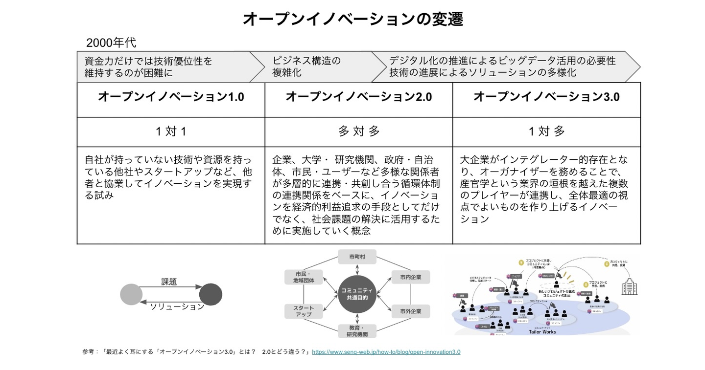 当初の考え方は「オープンイノベーション1.0」として、1対1の協業などが基本でした。