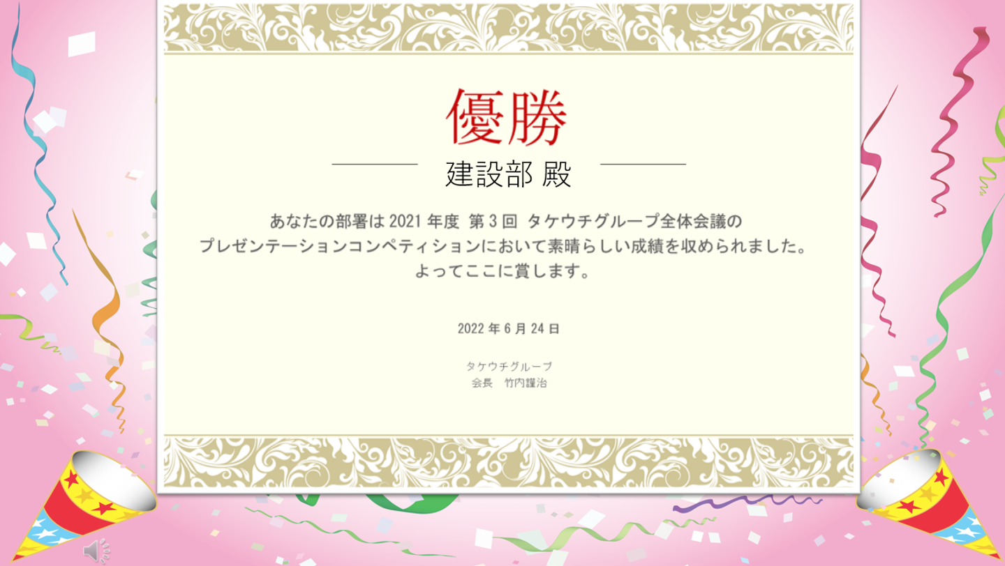 ちなみに今回の優勝チームは建設部!!おめでとうございます!!(前回から2連覇中です…!!)