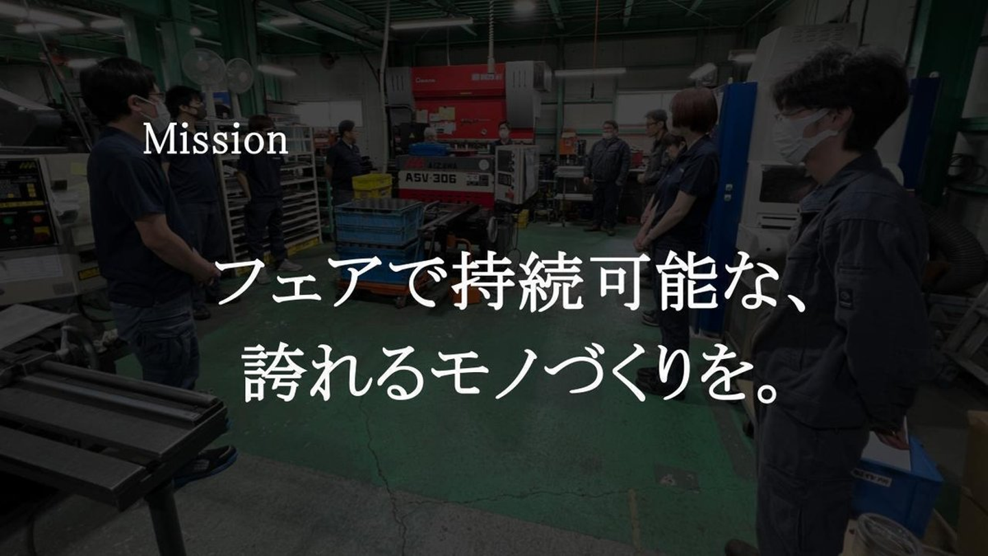 匠技研工業では「フェアで持続可能な、誇れるモノづくりを。」をミッションに掲げています。