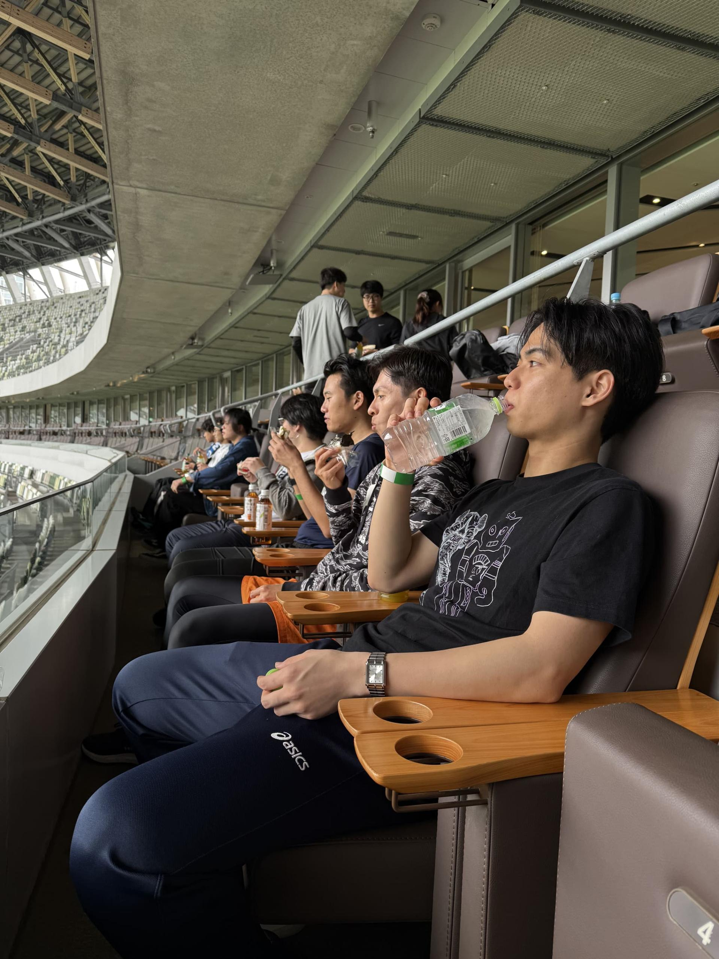 なんと国立競技場のVIPルームに案内され、憧れのケータリング付き。